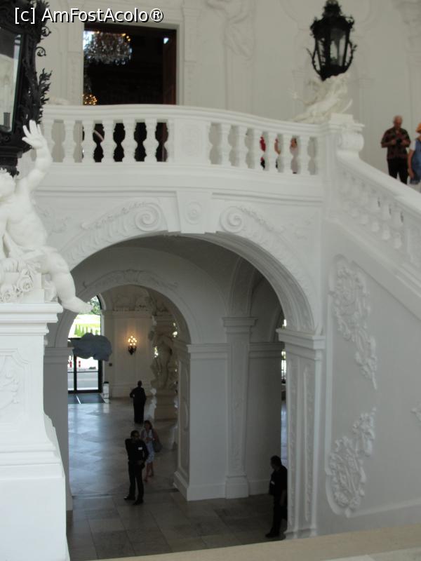 [P28] Scara impresionantă din marmură a muzeului Belvedere Mare. În spate se vede intrarea în sala de marmură roșie în care s-a semnat independența austriei în 1955.