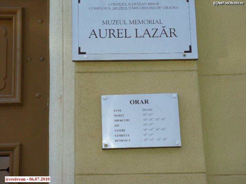 [P02] Muzeul Memorial Aurel Lazăr - programul de funcţionare.