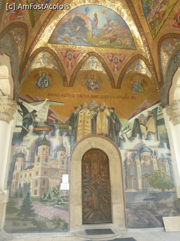 [P29] 29. Intrarea în biserică, și pictura ce ilustrează „Aducerea moaștelor Sfântului Andrei la Iași, în 1996”.