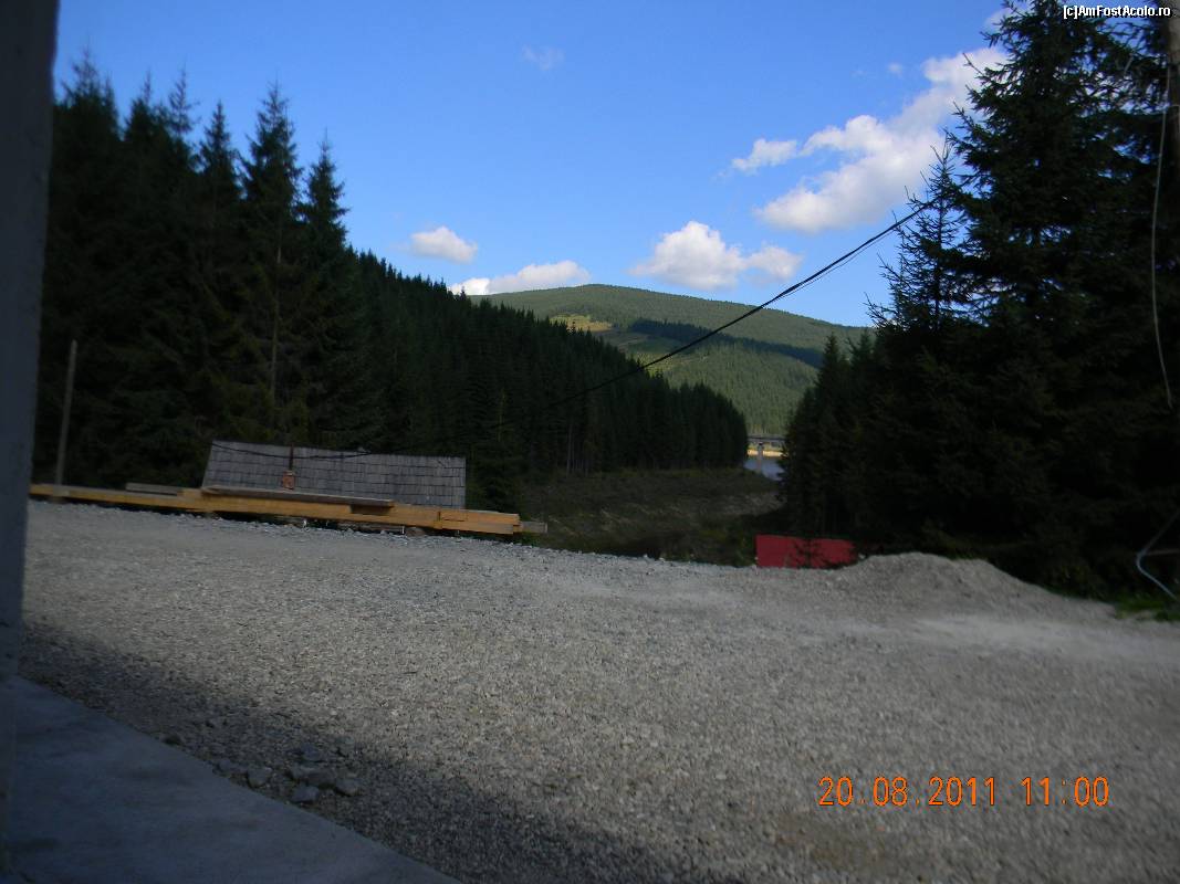 [P12] Cabana Cerbul (pârâul lacului Oaşa) - parcarea cabanei, iar în fundal se vede parte din lacul de acumulare de la Oaşa.