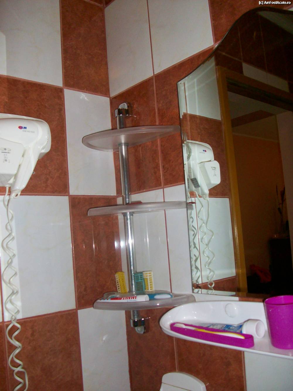 [P33] In stanga, la intrarea in baie, uscatorul de par, etajera cu sapun si gel de dus.
