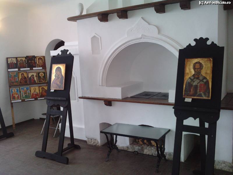 [P45] Piese de mobilier (s-au refacut in mod identic cu cele originale). Se poate observa in partea dreapta a fotografiei geamuri colorate prin care,la apus soarele patrundea creind un joc de culori.