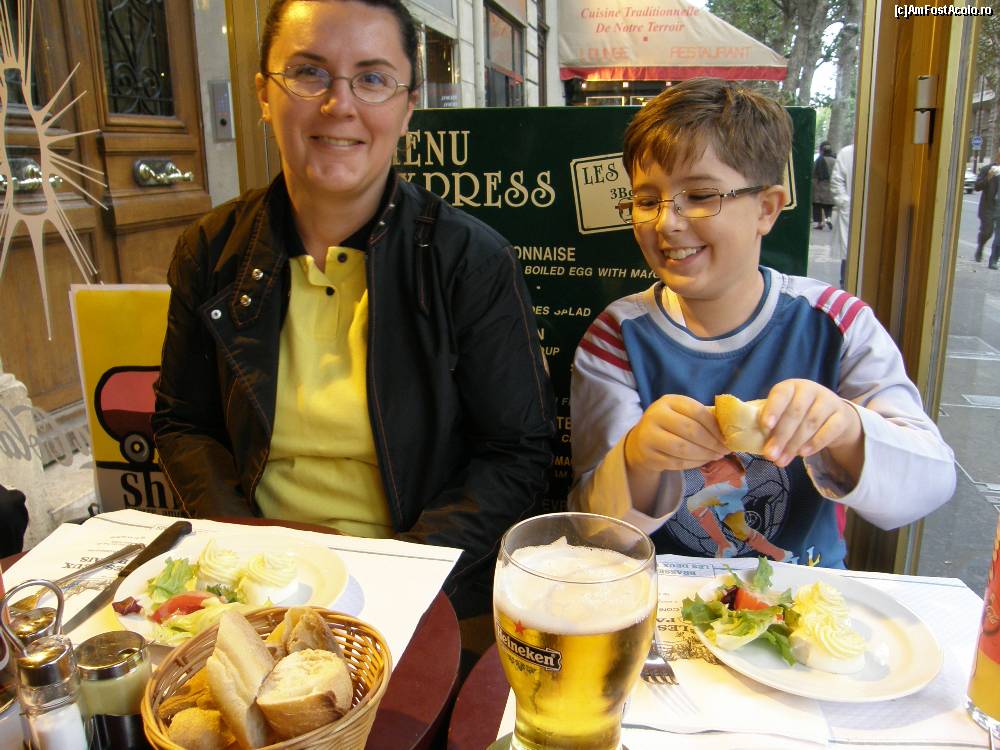 [P18] La masa de prinz, undeva pe trotuar linga Saint Chappelle. Se mananca f bine si destul de ieftin - meniul turistului (aperitiv, felul 2 friptura si desert fara bauturi).
