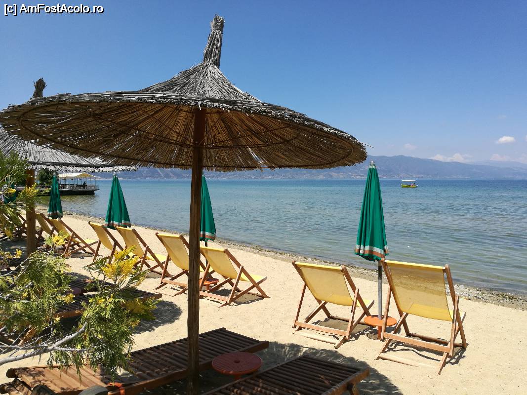 [P16] O plajă frumos amenajată la lacul Ohrid, imediat după trecerea în Albania
