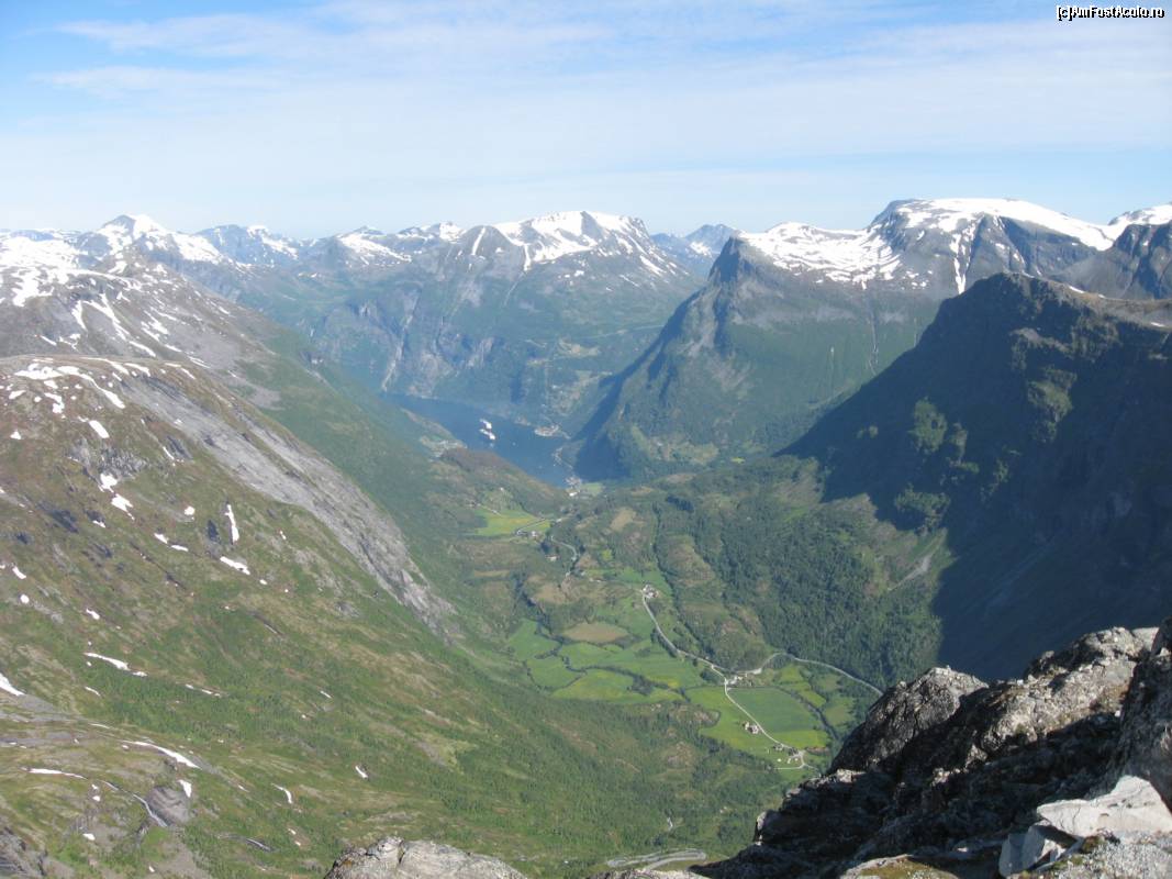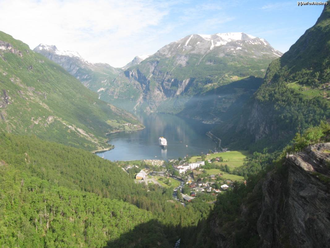 [P02] 10 iunie 2014, Geiranger văzut de sus. Lângă Costa neoRomantica apăruse un alt vas de croazieră.