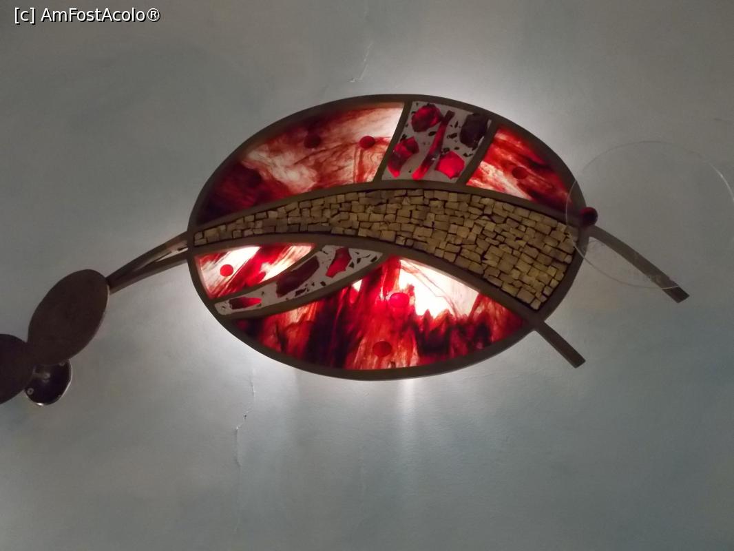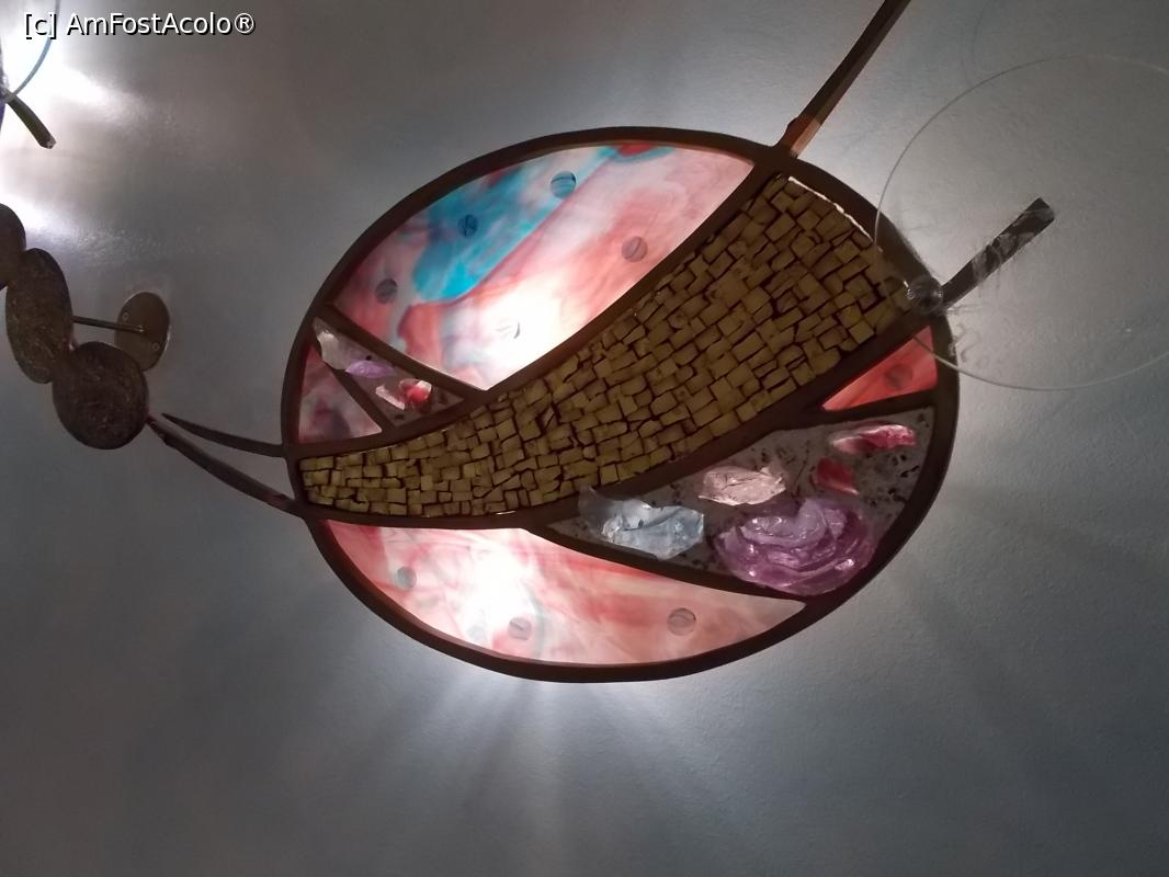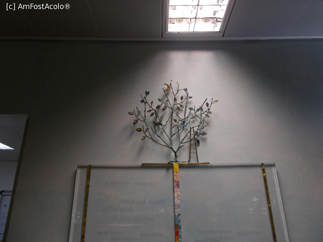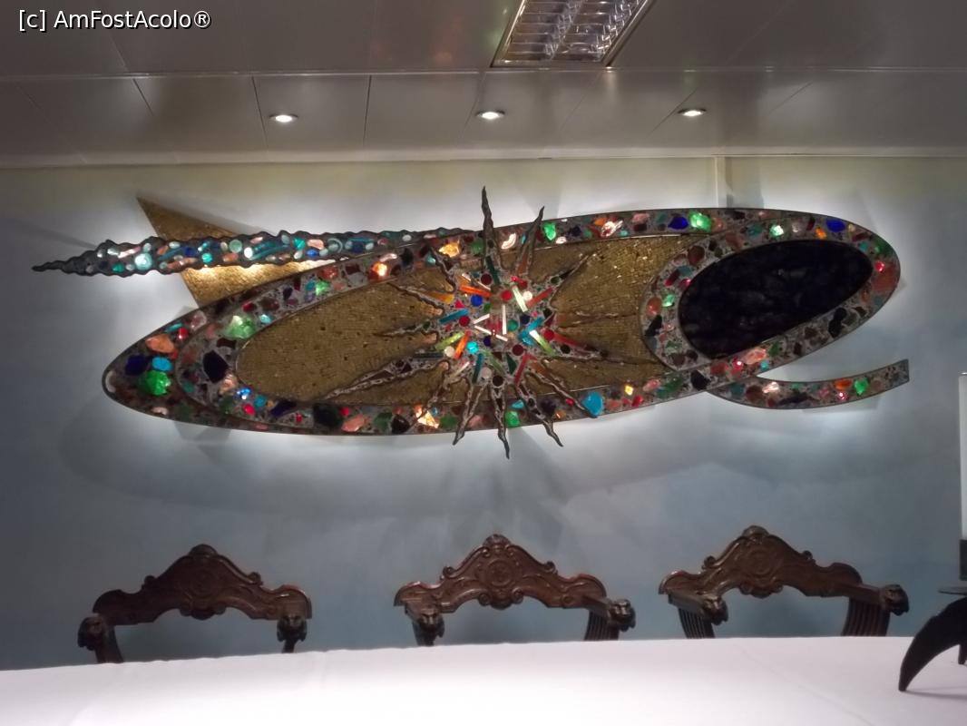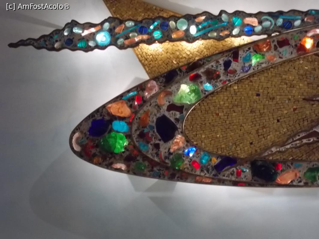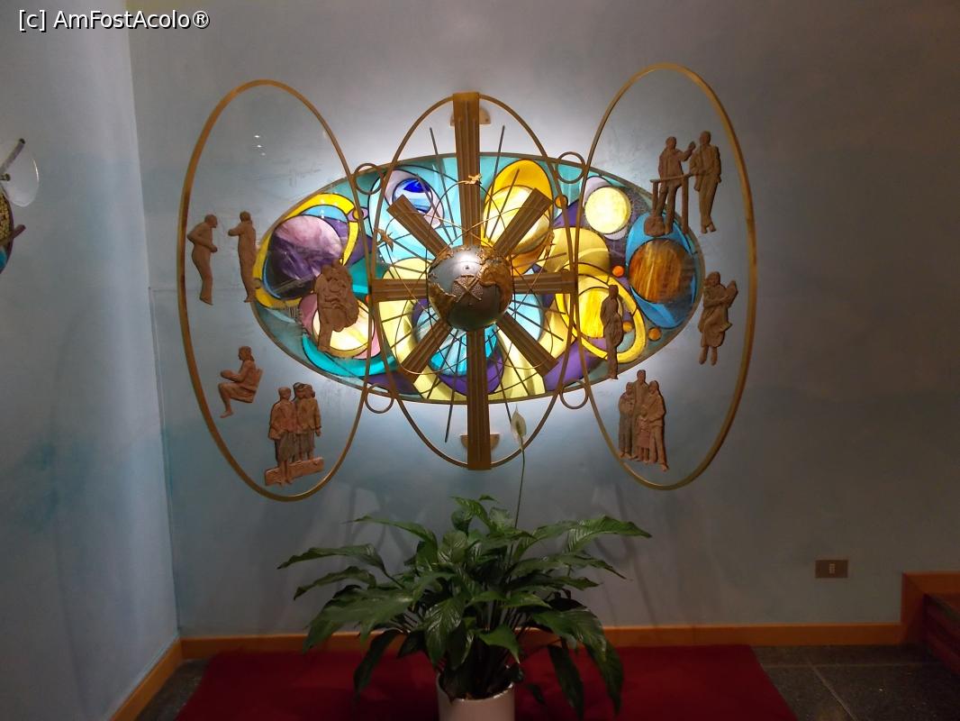 [P08] Capela Aeroportuară Linate. Sculptura Ecumenică. Colțul aurit reprezintă Trinitatea, către care zboară sufletele celor buni, punctați cu pietre colorate. Pietrele închise la culoare sunt ale celor răi și care nu ajung acolo.
