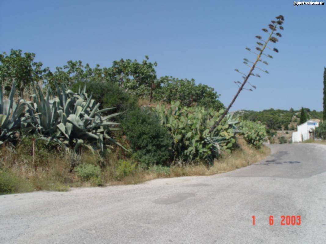 [P23] Agave și cactuși pe șoseaua de la mănăstire la Souvala, lîngă o livadă de fistic