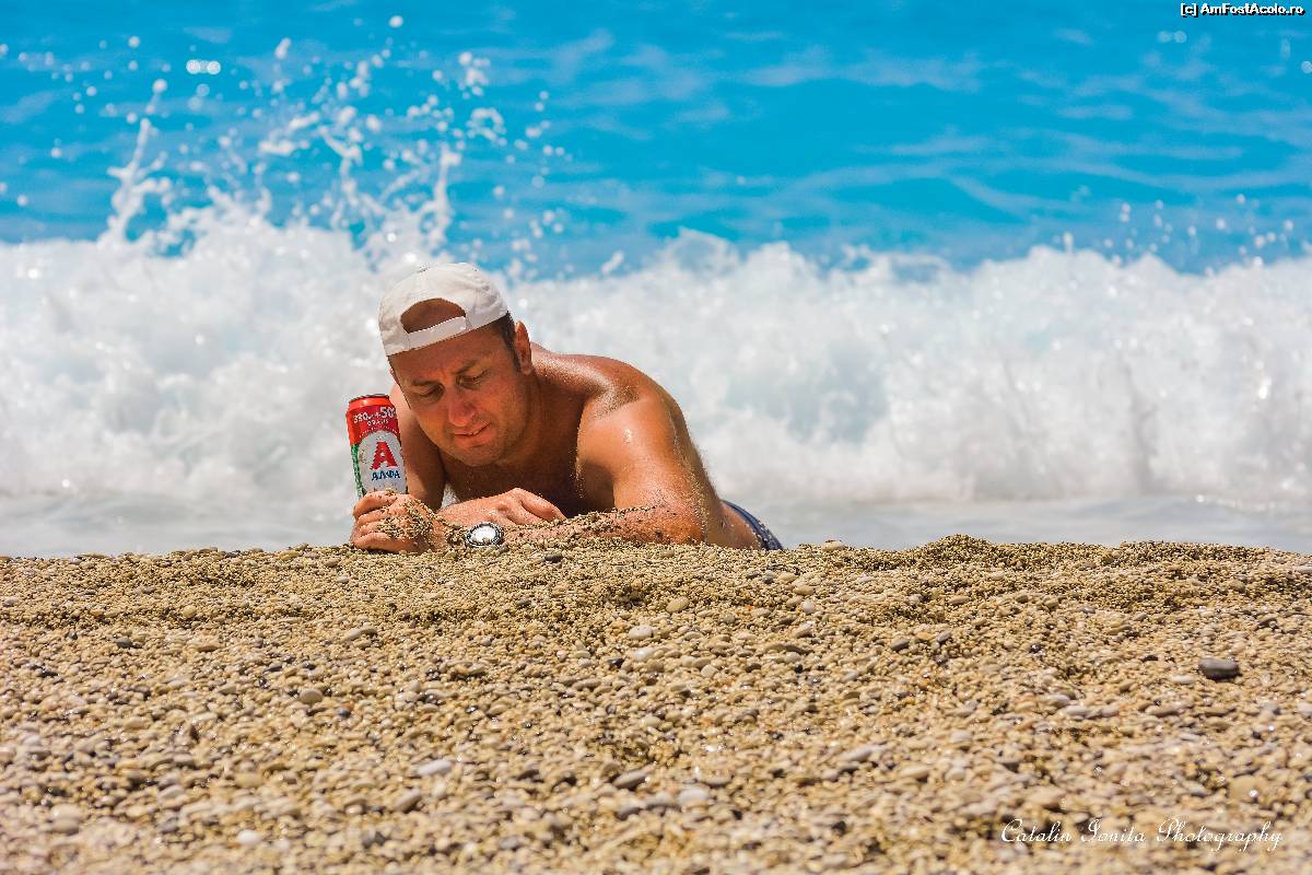 [P16] Aici ma vad mai bine. Ma tineam de bere sa nu ma ia valul de la Milos beach. Orice s-ar intampla, nu las berea din mana!