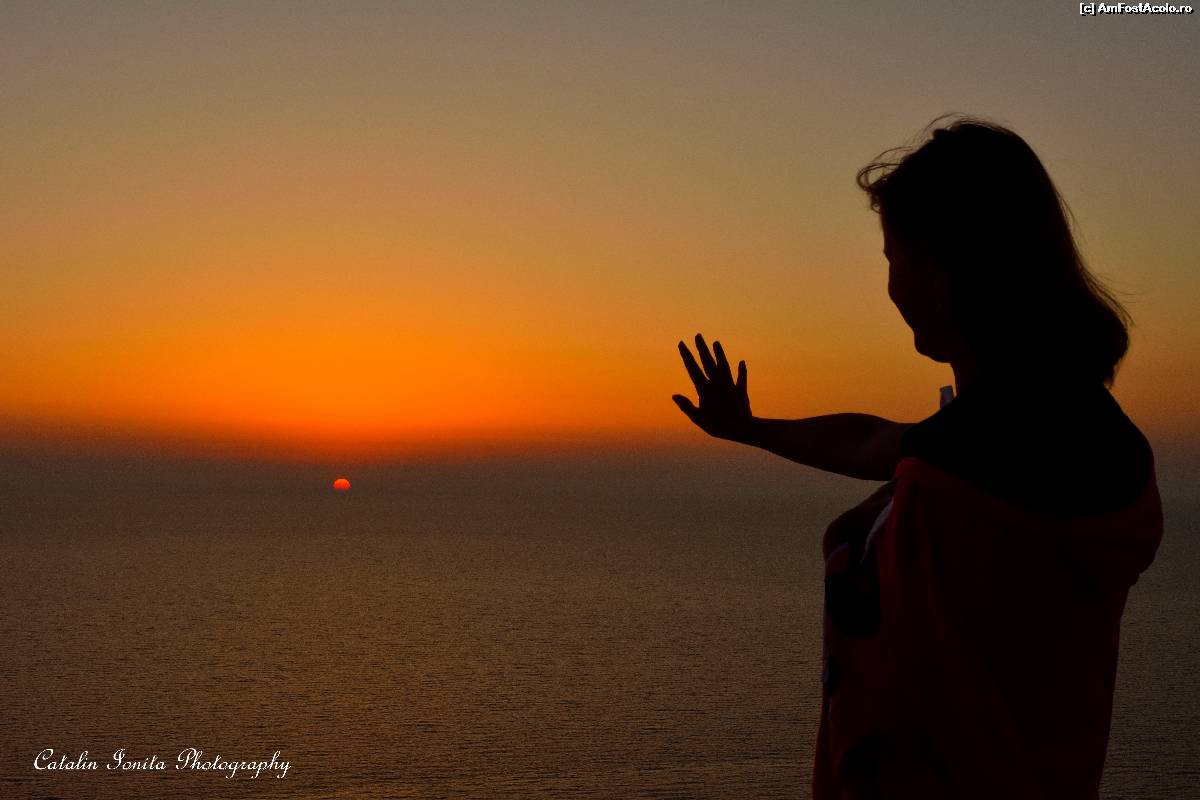 [P17] Nevasta-mea si-a facut un prieten nou in Lefkada: Soarele. Isi lua ramas bun de la el in fiecare seara de la Kathisma beach.