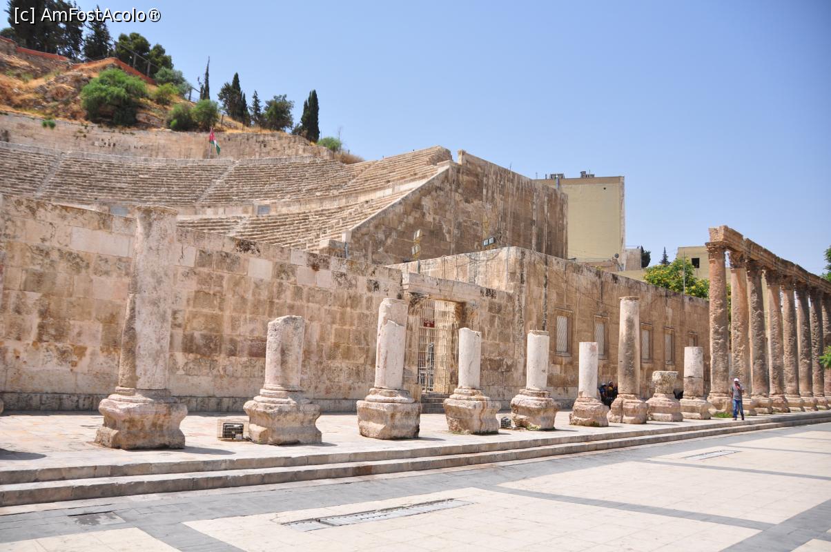 [P13] urcand treptele colinei spre Citadela, am surprins o imagine a Teatrului Roman si a pietei Hashemite Plaza