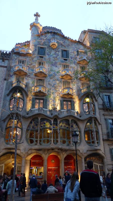 [P09] Casa Batllo luminată şi foarte greu de fotografiat cu toată populaţia din zonă, plus maşinile de rigoare.