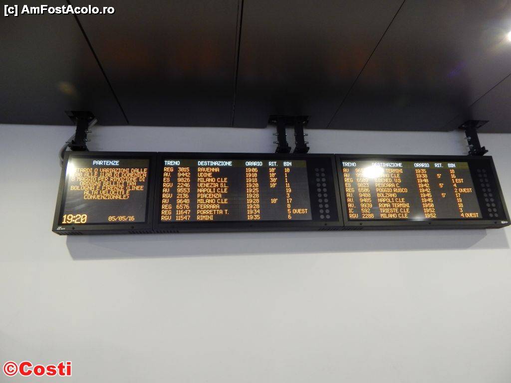 [P32] Tabelă electronică de afișare a plecărilor. Gara Bologna, intrarea secundară, din nord, de pe via de Carracci.