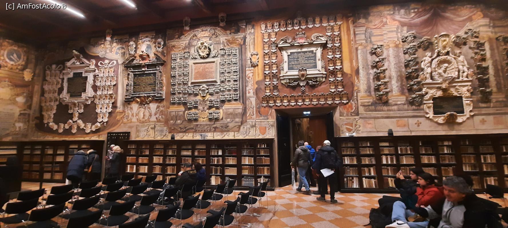 [P75] Bologna, Palazzo dell Archiginnasio, Biblioteca pozată din ușă, nu se vizitează, doar se pozează....