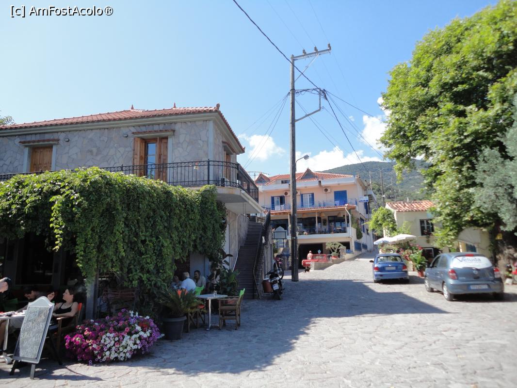 [P32] Poertul din Skala Sikamineas și aleea cu mese la umbră.