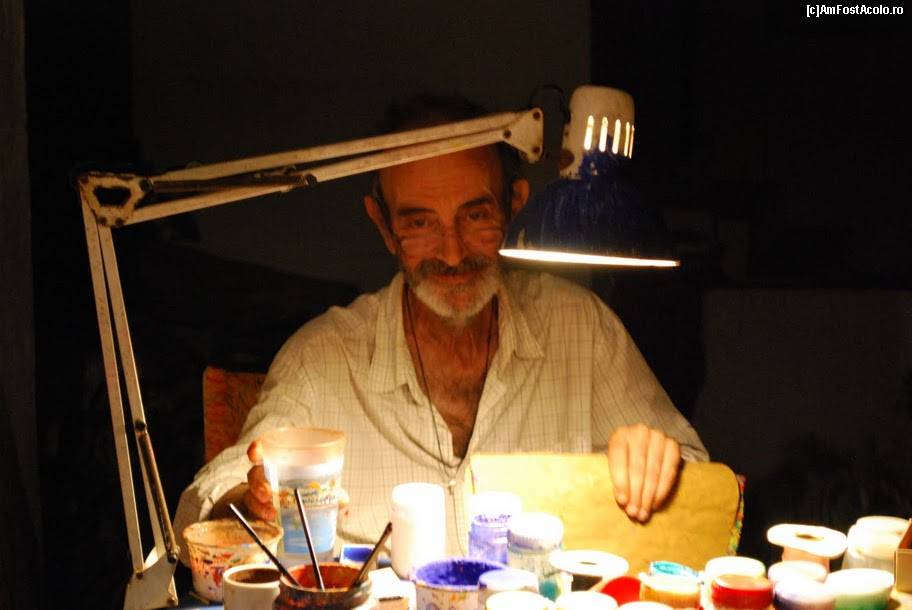 [P21] Pictor de ceramica si bijuterii in Kastro. Salonul era superb, dar nu ne-a dat voie sa pozam articolele. A fost in schimb bucuros sa fie el modelul :)