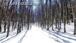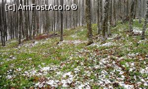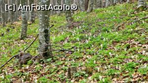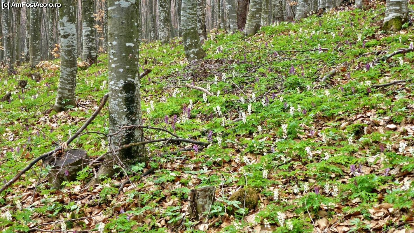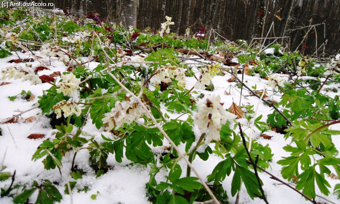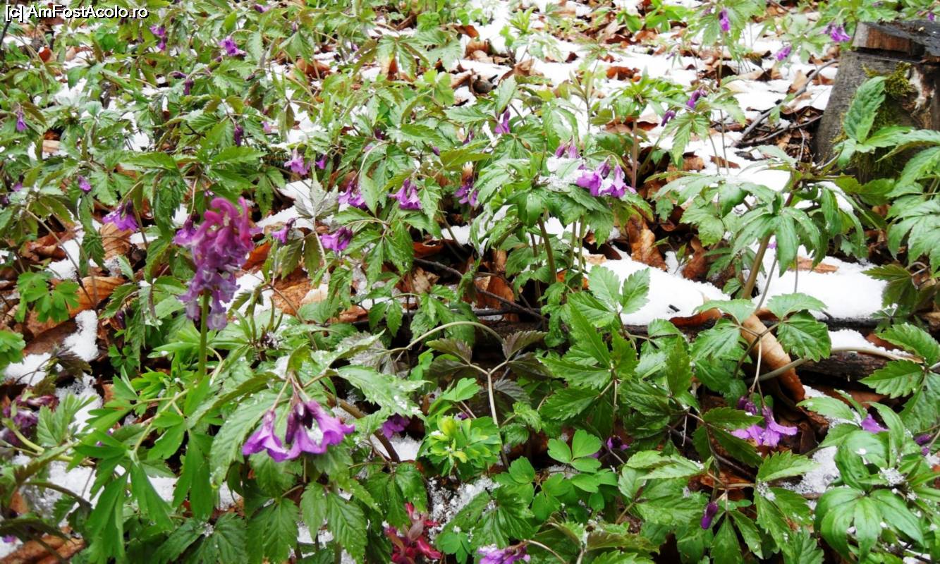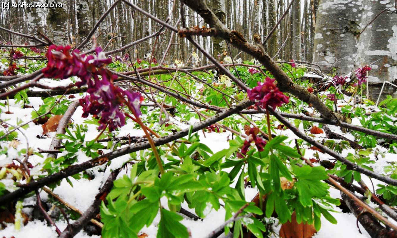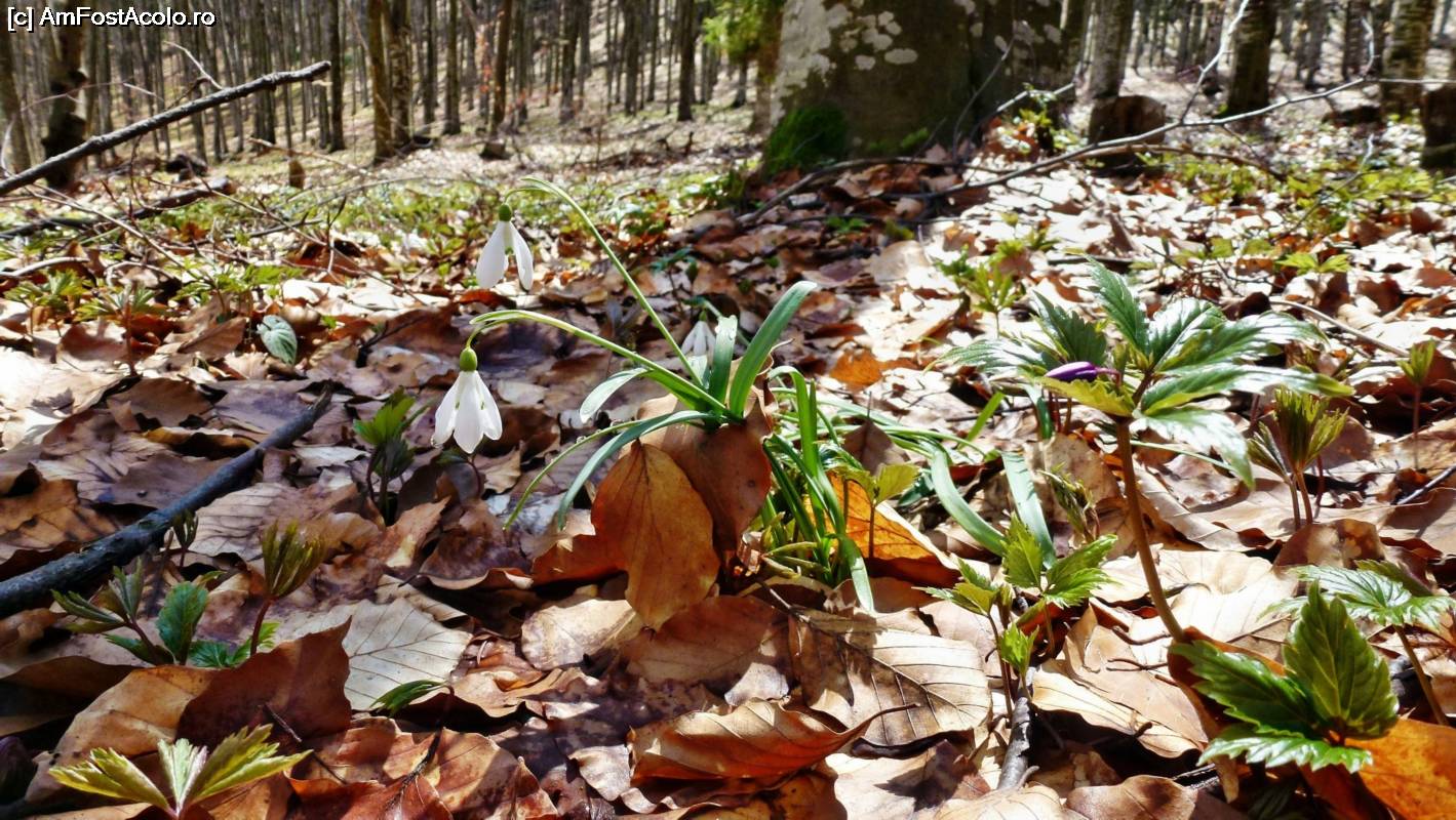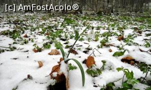 [P02] Pădurea de pe Muntele Grețeș poate fi încă acoperită de zăpadă la sfârșitul lunii martie. Florile trebuiesc căutate pe sub pătura de nea.