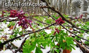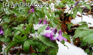 [P12] Flori (Poroinic sau Untul-vacii? , orhidee carpatină ocrotită) surprinse de ultima răbufnire a iernii pe Muntele Grețeș la începutul lunii aprilie