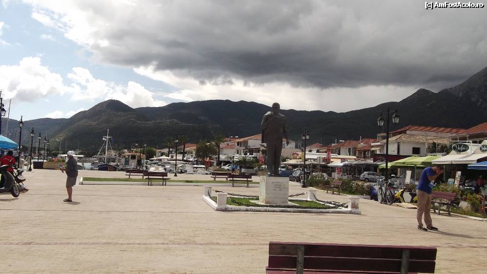 [P18] Traind in cercul vostru stramt/Norocul va petrece/Ci eu, in lumea mea ma simt/Nemuritor si rece - statuia lui Onassis din portul Nidri