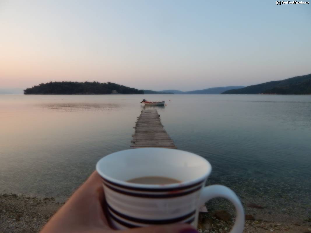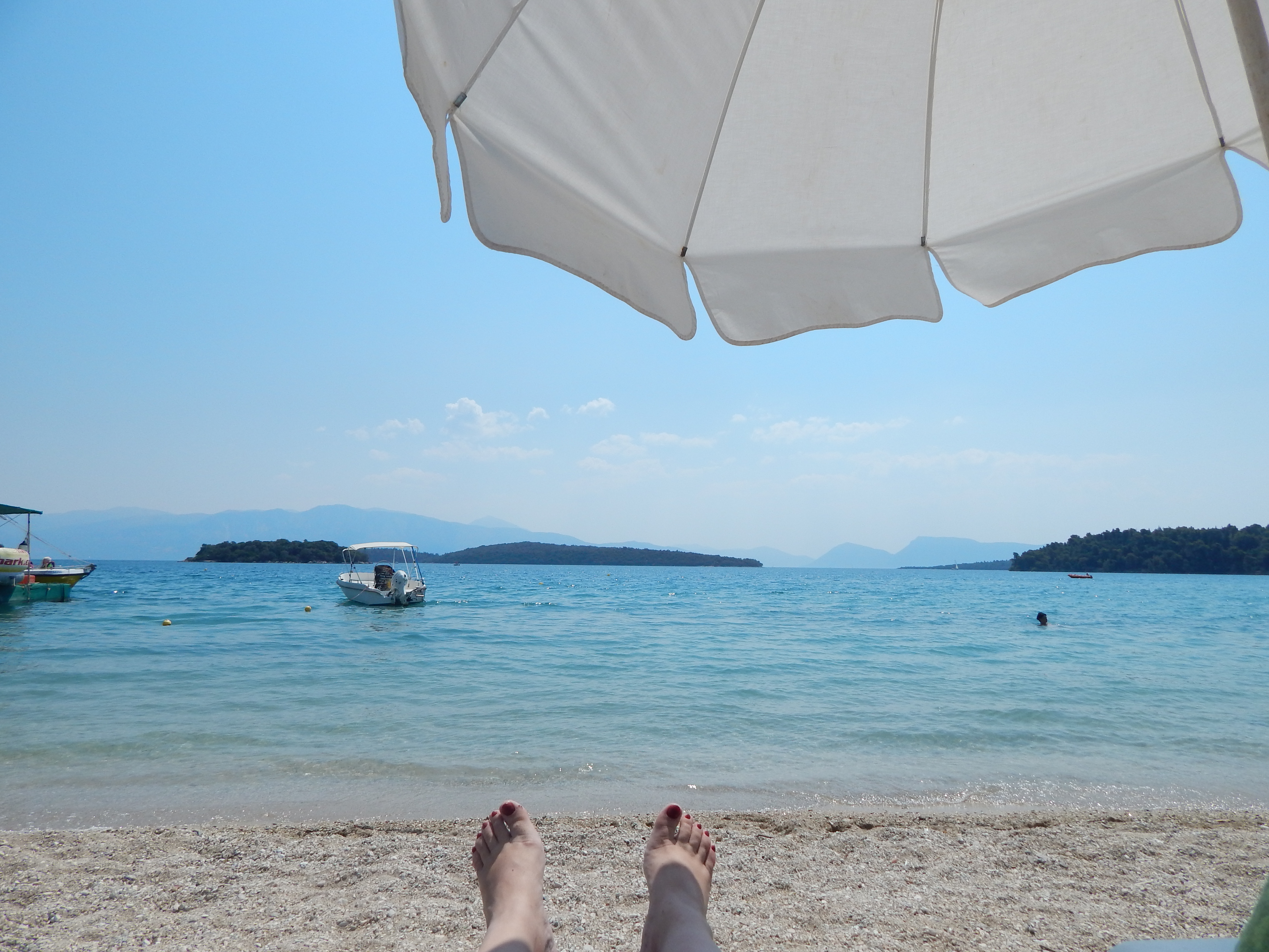 [P01] Pe o plaja mica in Nidri, in dreptul barului SAILINN, pe sezlong (care sunt gratuite daca comanzi ceva de la ei), cu o priveliste superba