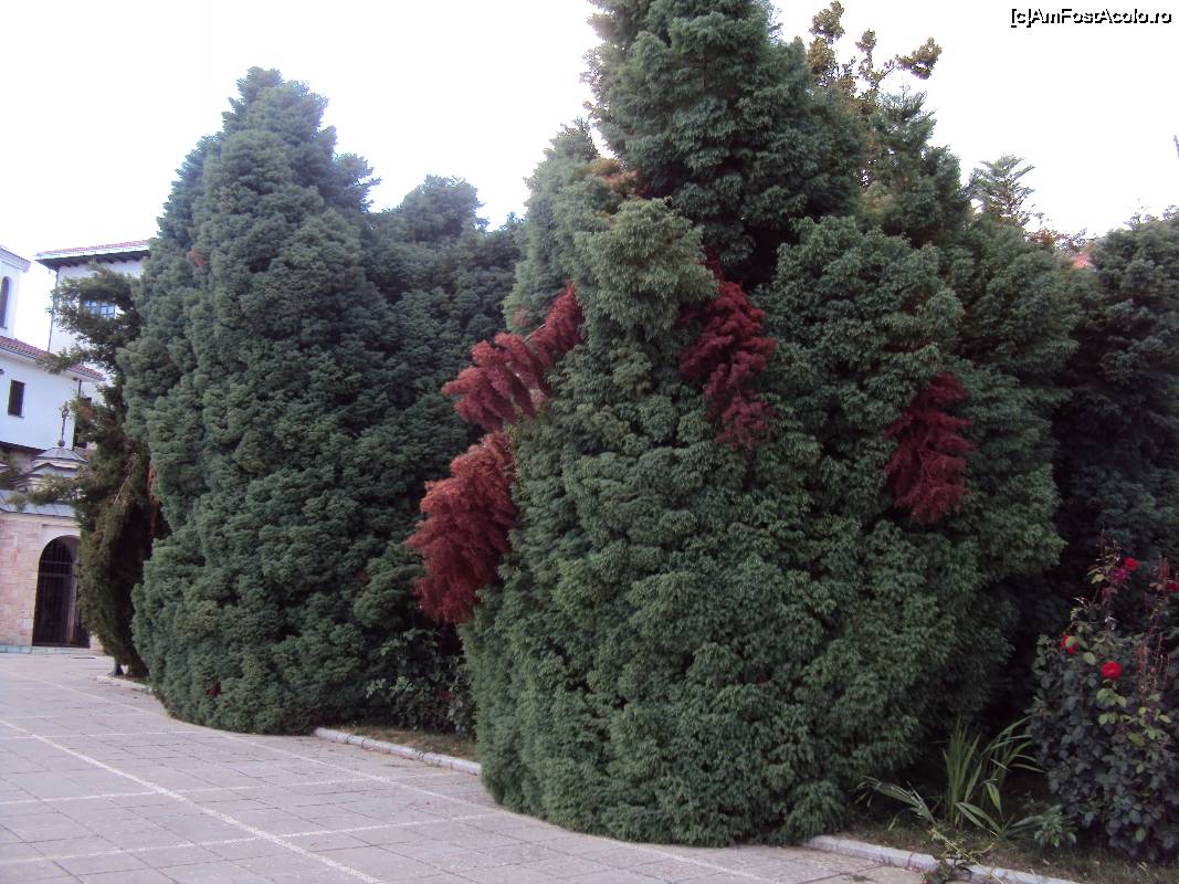 [P23] 22. Curtea mănăstirii este plină de arbori ce par a fi tuia.