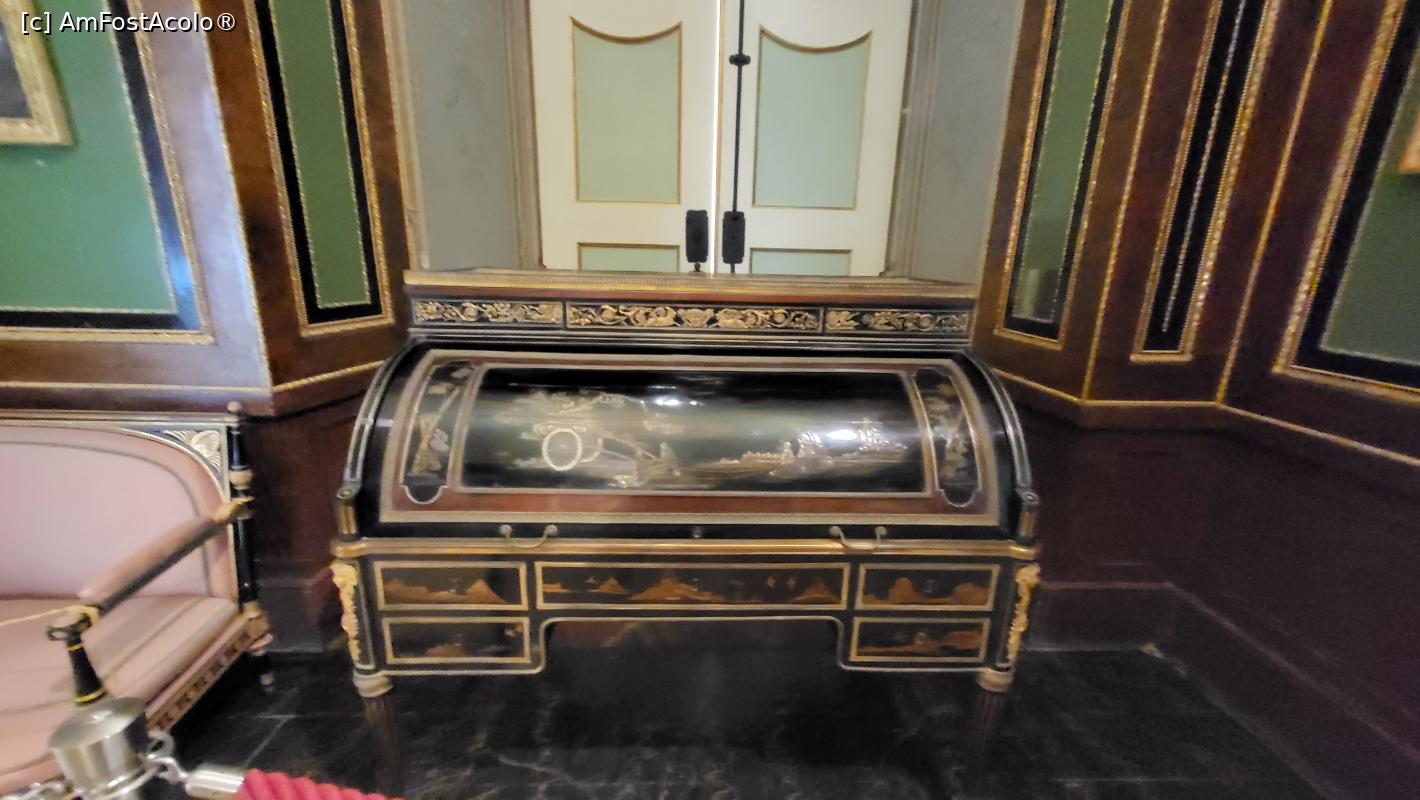 [P13] Mobilierul din lemn de abanos si lac chinezesc in stil oriental, era un curent la moda, larg raspandit la curtile regale europene in sec. al XVIII-lea. Acesta este o copie, originalul achizitionat de rege in Frankfurt fiind expus la Muzeul Metropolitan de Arte din New York.