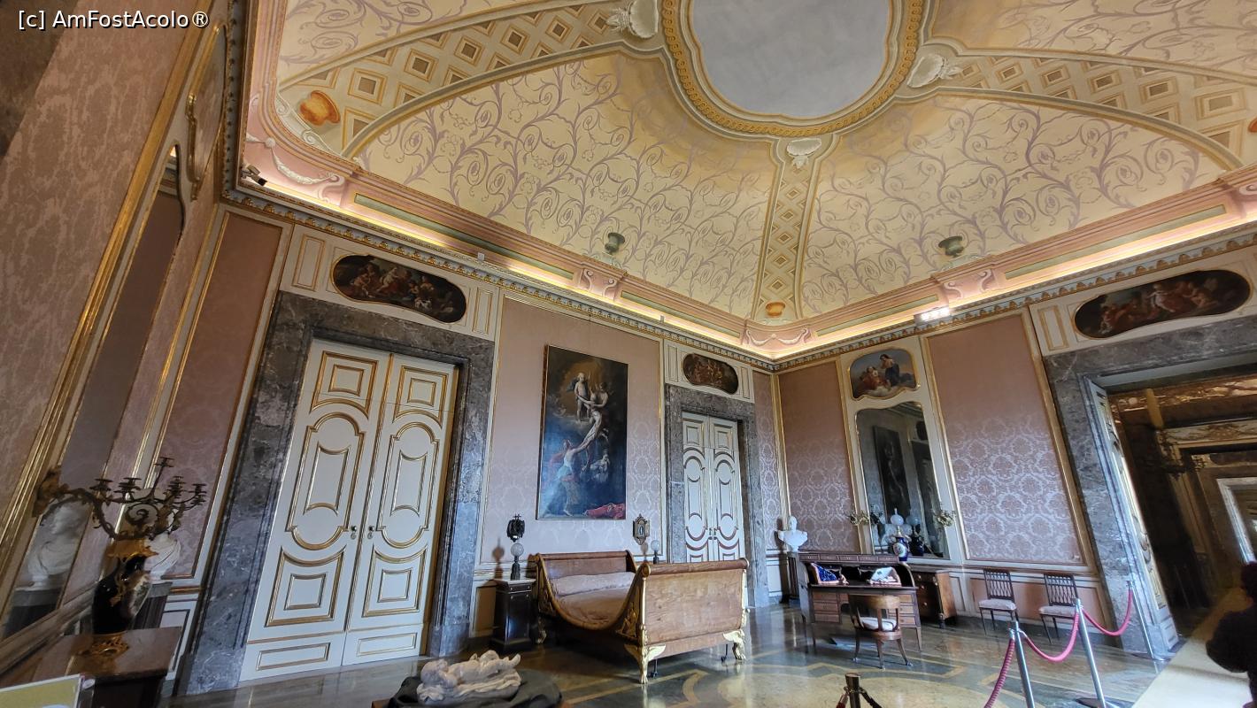 [P22] Dormitorul principesei Maria Cristina adaposteste picturi ale unora dintre cei mai mari artisti napoletani ai sec. al XVIII-lea. Mobilierul este din lemn sculptat si pictat cu decoratiuni policrome in relief pe fond bej. Camaruta din spate dreapta a fost destinata Oratororiu.
