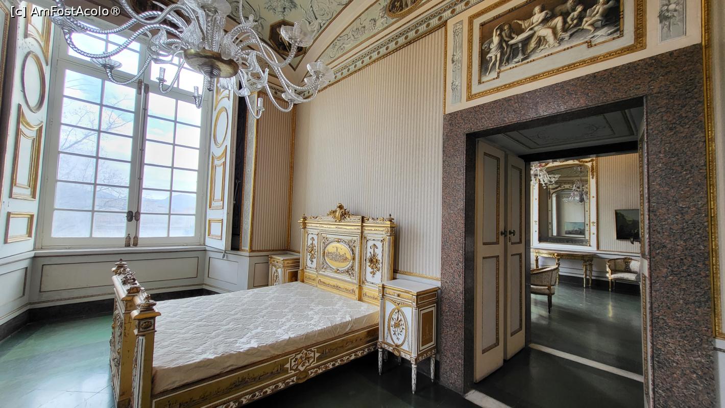 [P15] Dormitorul regelui Ferdinand al IV-lea si al reginei Maria Carolina a suferit o transformare radicala la moartea regelui Francisc al II-lea, despre care se presupune ca ar fi murit din cauza unei boli contagioase. Pentru a reduce efectele contagiozitatii, mobilierul original a fost înlocuit.