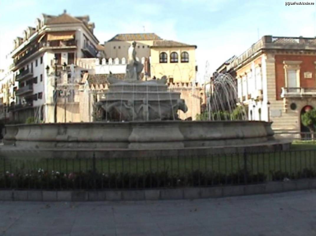 [P12] Puerta de Jerez, important nod de transport, cu Fuente de Sevilla sau de Hispalis (numele roman al oraşului) iar în dreapta Palacio de Yanduri, datând de la începutul sec. XX