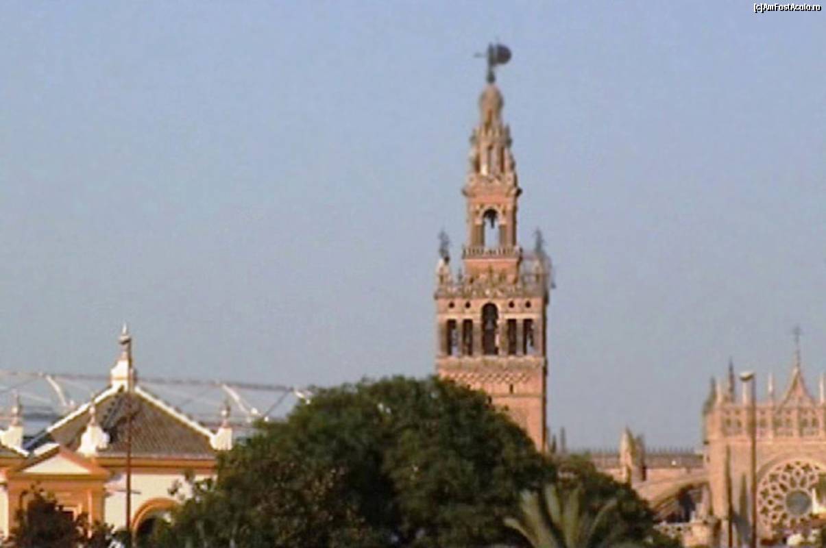 [P04] Giralda - turnul cu giruetă al catedralei, fotografiat de pe celălalt mal al Guadalquivirului, din cartierul Triana