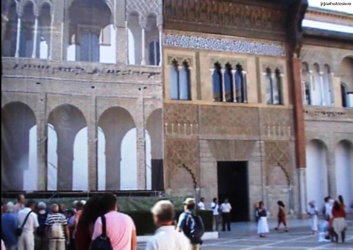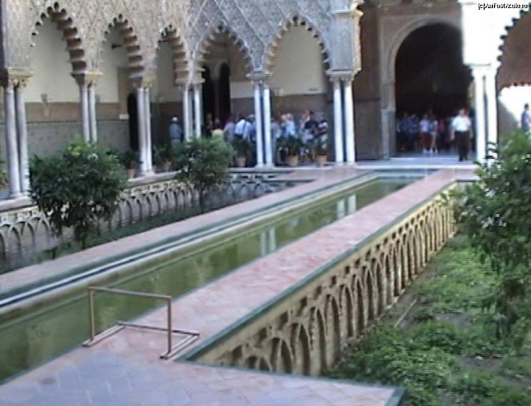 [P08] Real Alcazar - Patio de la Monteria sau Curtea Vănâtorii, cu grupuri numeroase de turişti
