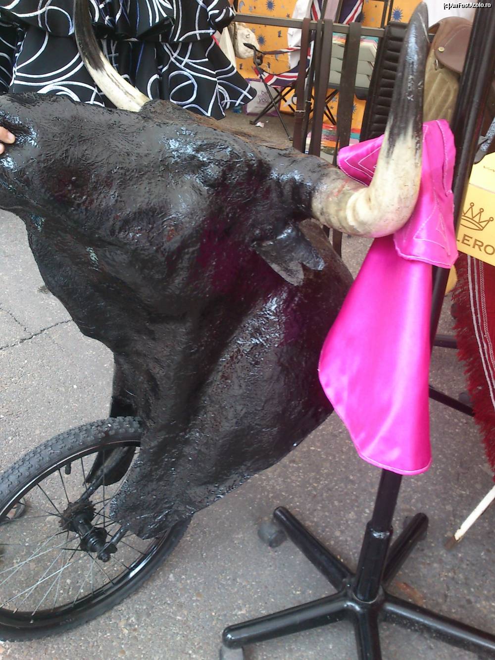 [P04] Cu acest cap de taure, pus pe un fel de bicicleta, si copiii pot fi toreadori!! E pe bune: cineva iese si alearga dupa copii, iar acestia "pretind" a fi toreadori adevarati :)