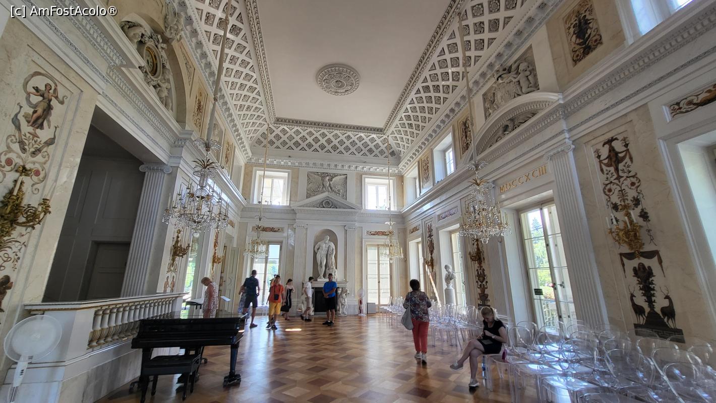 [P10] Rotonda ocupa partea centrala a palatului, avand legatura cu Baia, Sala lui Solomon si Sala de mese. Este o camera rotunda, decorata cu marmura galbena si alba, cu sculpturi ale regilor polonezi, incununata cu o cupola pe unde patrunde lumina.