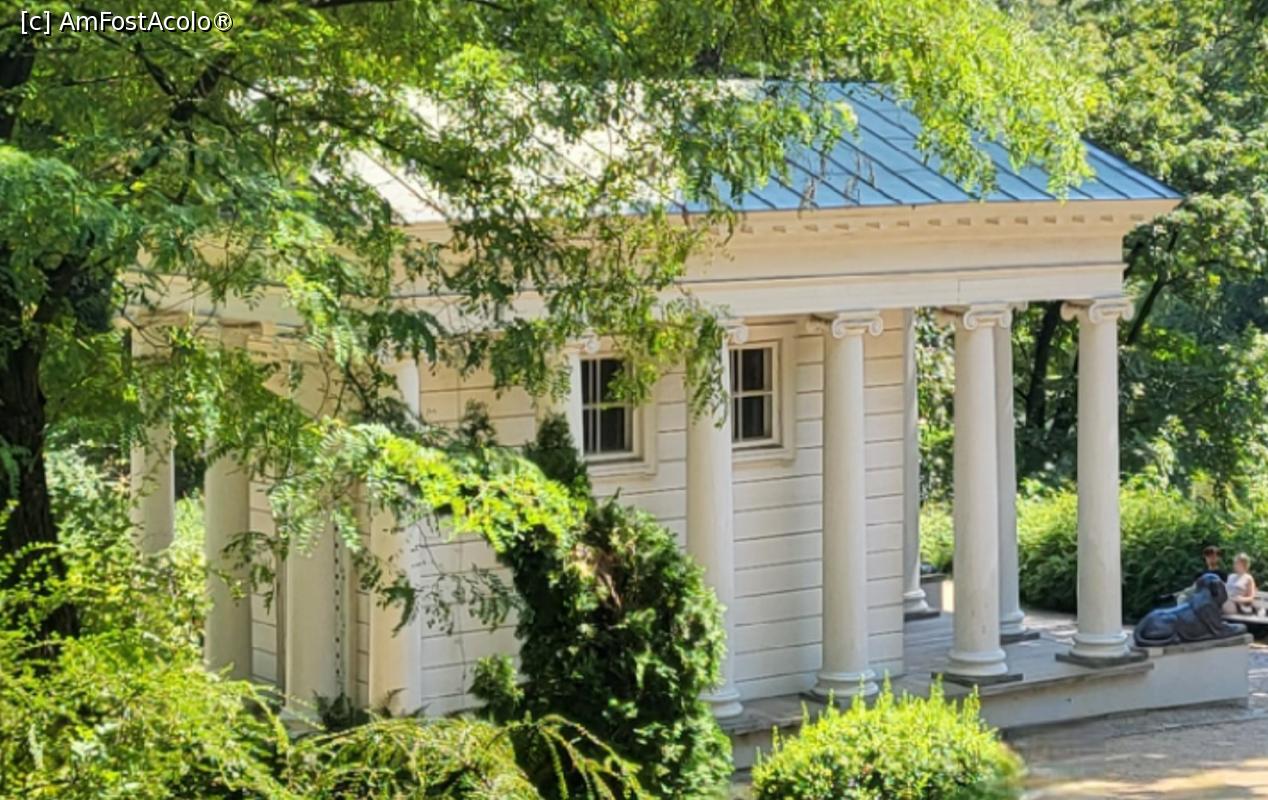 [P17] Templul Sibilei, nu departe de monumentul Chopin. Numit initial „Templul grecesc” sau „Templul Dianei”, Sibila se refera la numele dat oracolelor in Grecia Antica. Este unic pentru ca este realizat in intregime din lemn, in ciuda vopselei albe si a coloanelor ionice si e pazit de doi lei din fonta.