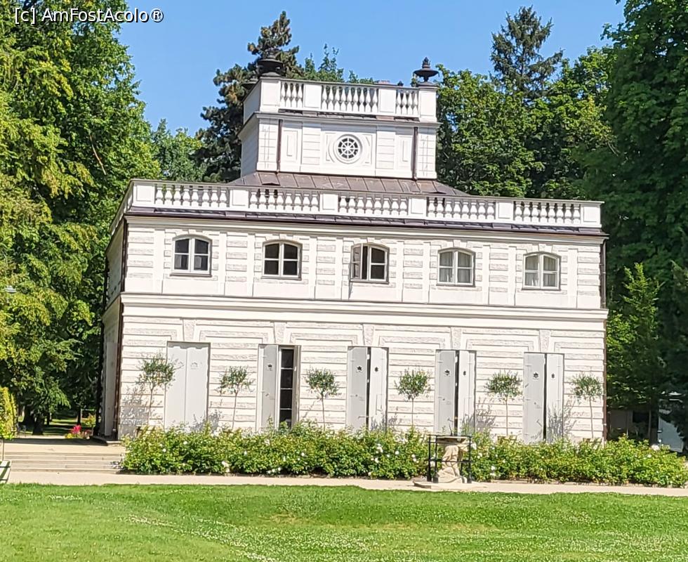 [P03] Pavilionul alb, o frumoasa vila de forma patratica, cu o mica terasa pe acoperis, ridicata de la zero la ordinul regelui Stanisław August, pentru marea lui iubire, dar si locul in care s-a retras Ludovic al XVIII-lea atuci cand a fost exilat din Franta. A fost devastat de nemti in cel de-al Doilea razboi mondial, insa multe obiecte de mobilier au supravietuit.
