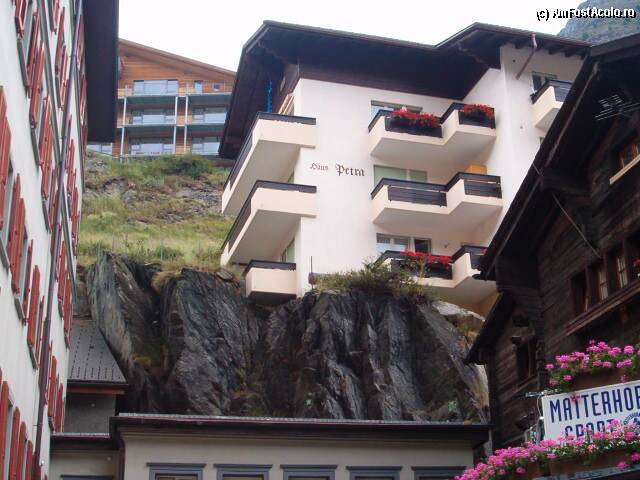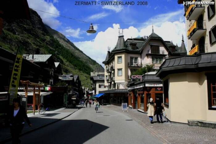 [P00x] ZERMATT - ELVETIA 2008. Un vestit oras de munte deosebit de curat dar si scump. Acesul autovehicolelor este interzis, acestea fiind lasate intr-un alt oras - TASCH - la doar 8 Km. In orasul ZERMATT se poate ajunge numai cu trenul GLACIER EXPRESS. Altitudinea la care este situat orasul este de 1620 m.
