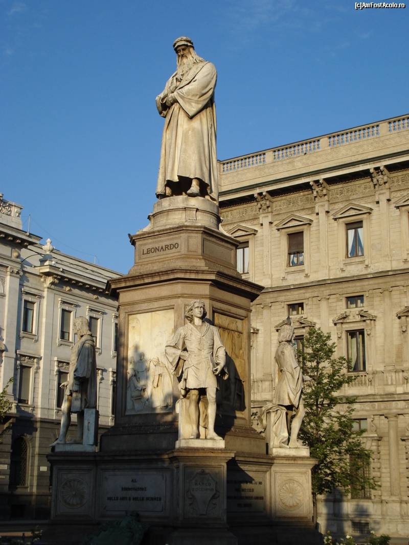 [P10] Statuia lui Leonardo daVinci din P-ta Scalla din Milano, iul. 2007