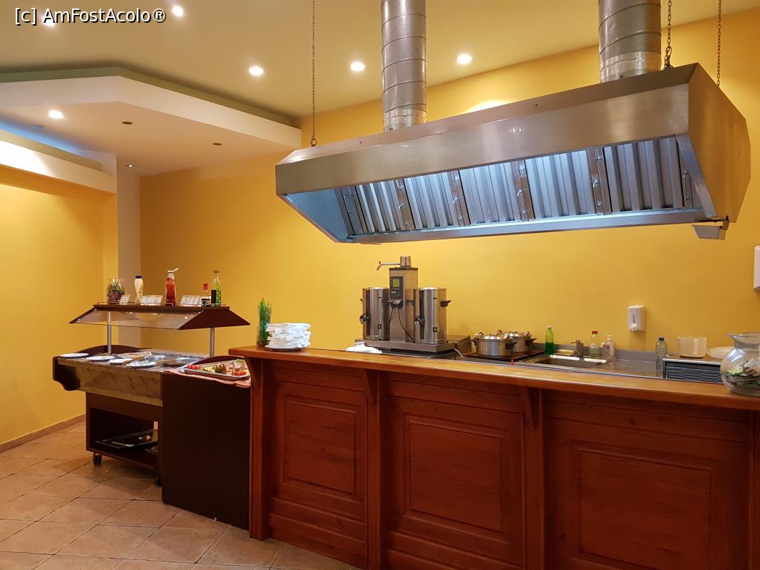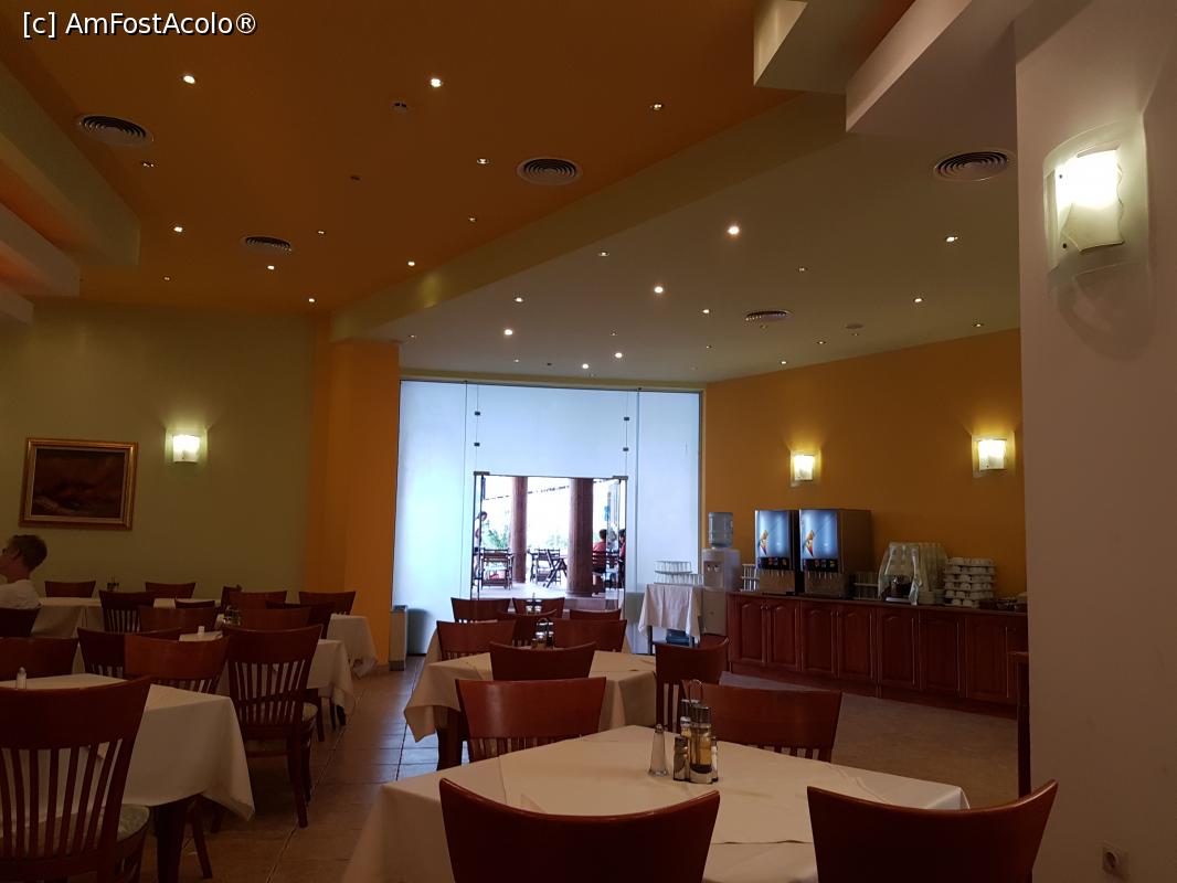 [P21] O zona a restaurantului. In spate sa vad dozatoarele de suc care puteau fi folosite si la micul dejun si la cina