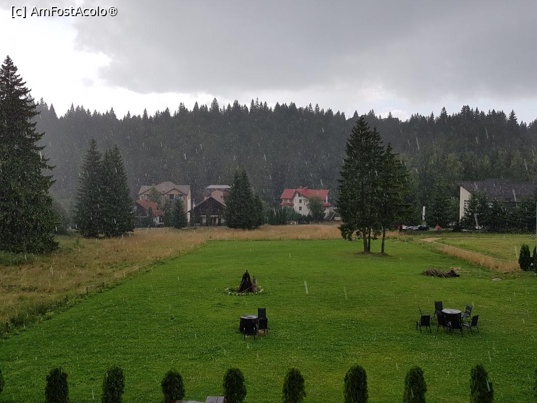 [P12] Vedere de la geamul camerei noastre. Afară ploua torențial.