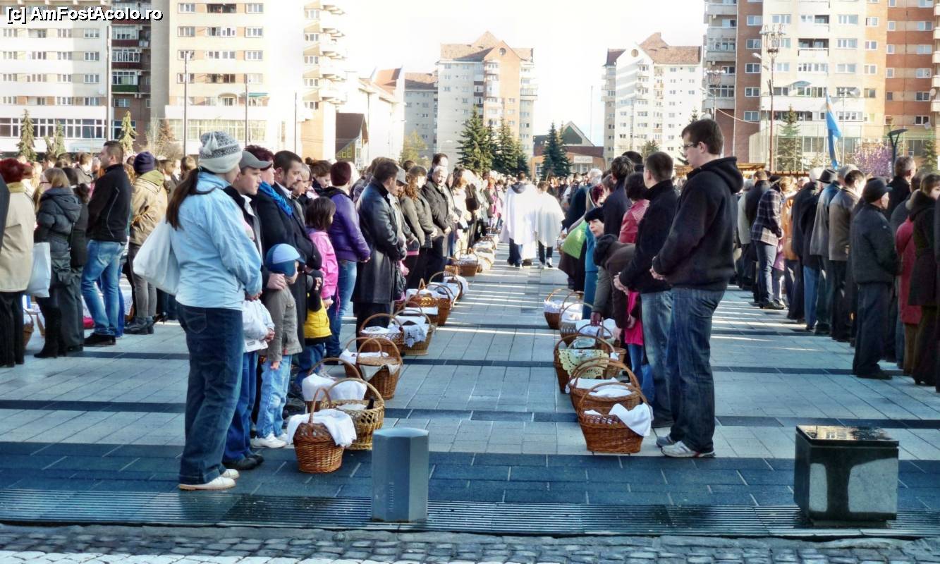 [P09] După terminarea slujbei, echipe de preoţi (uneori cu participarea lui Tamás József, episcopul Romano-Catolic de Alba Iulia) trec printre şirurile de credincioşi binecuvântând bucatele aduse