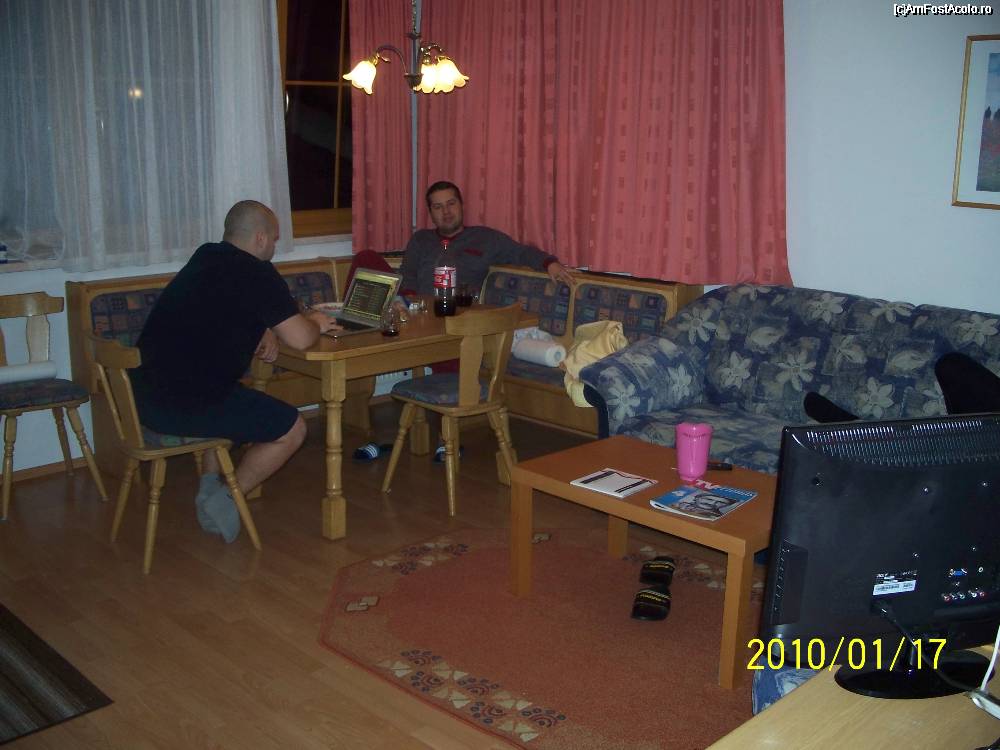 [P03] Living/Bucatarie - baietii la relax dupa o zi de ski.Laptopul era al nostru,dar LCD-ul al lor :)