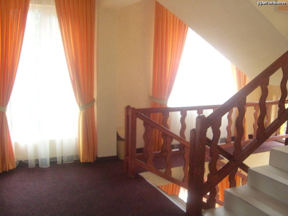 [P25] Scarile hotelului. Gresie pe scari, mocheta pe holurile tajelor, balustrada din lemn masiv, iluminat cu senzori pe scari si cu intrerupator pe holuri.