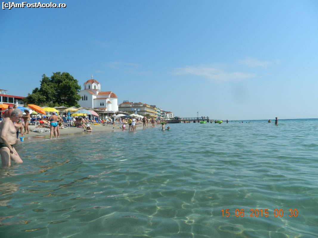 [P15] vedere plaja din fata hotelului Avra, un hotel foarte bun, curat, camere cu finisaje si dotari noi, dar camerele sunt mai micute pentru o familie cu 2 copii si nu ofera nici un fel de masa.