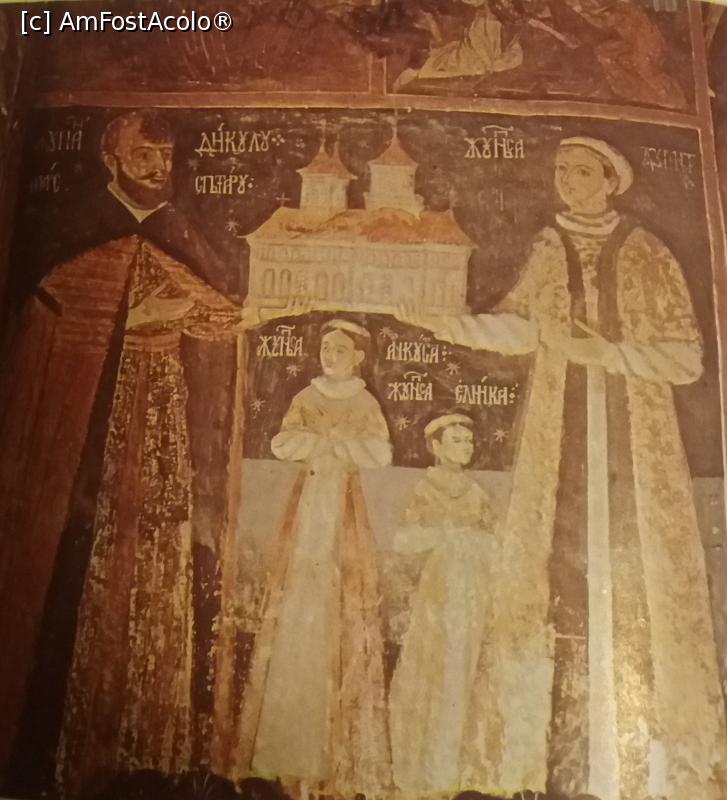 [P26] Mănăstirea Clocociov - Biserica veche. Ctitorul Diicu Buicescu cu soția sa jupâneasa Dumitra și două fete, Elinca și Ancusa.