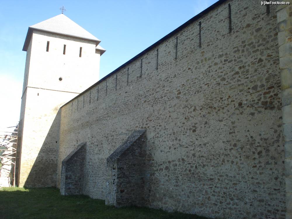 [P04] Alta imagine cu zidurile groase de apare si cu alt turnulet de pe partea stanga cum se intra in manastire