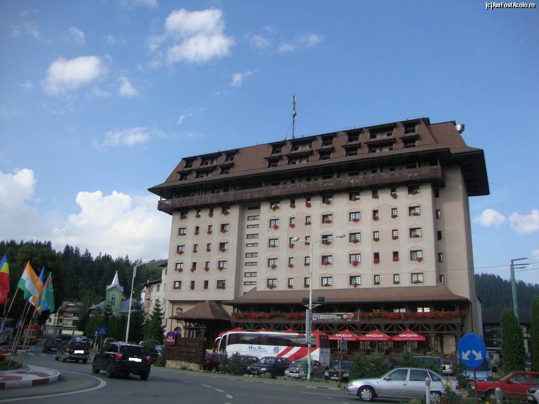[P01] Suntem în zona centrală a orașului Gura Humorului. Mașinile avansează pe lângă parcarea hotelului Best Western Bucovina – Club de munte în direcția localității Mănăstirea Humorului (aprox. 5 km). Fotografia am realizat-o în aceeași zi, cu câteva ore mai devreme de a vizita Mănăstirea Humor.
