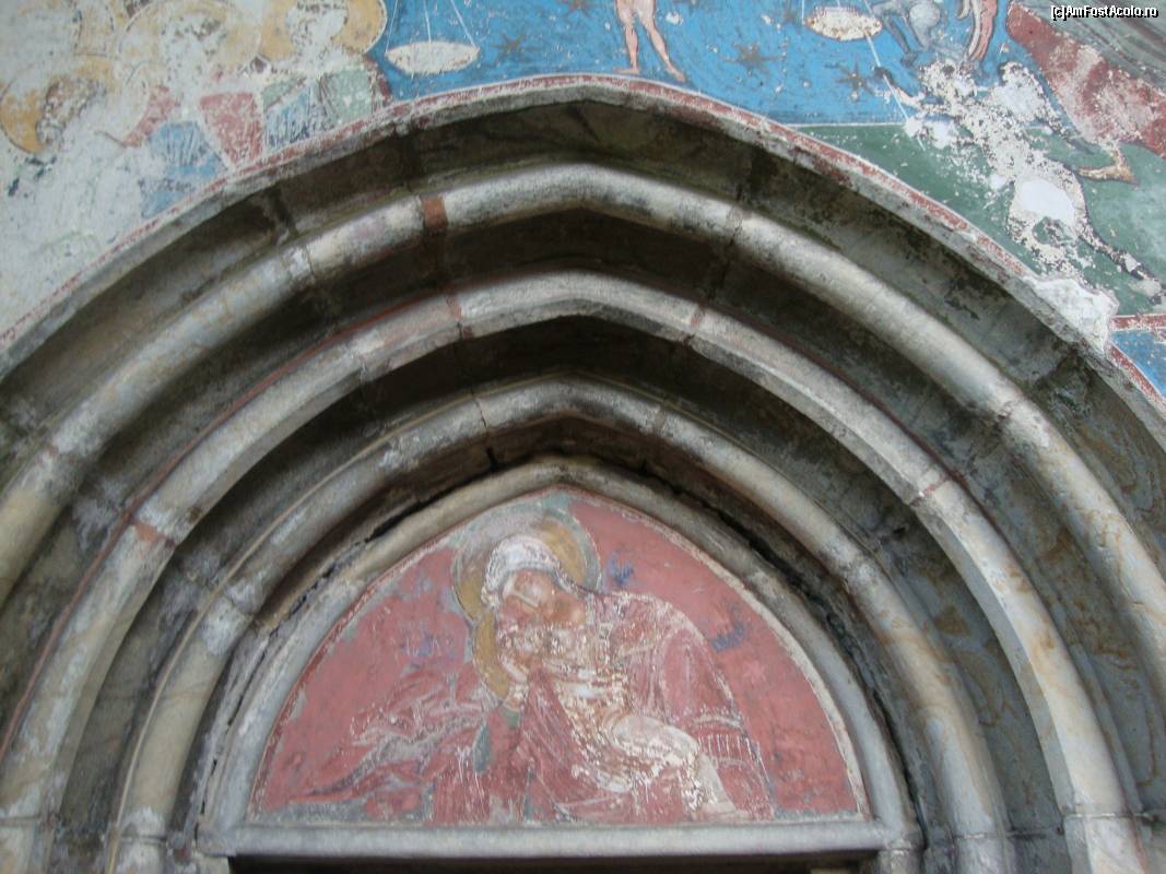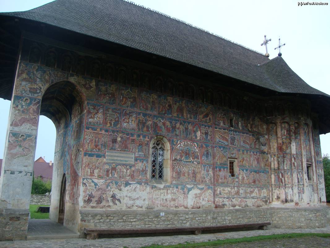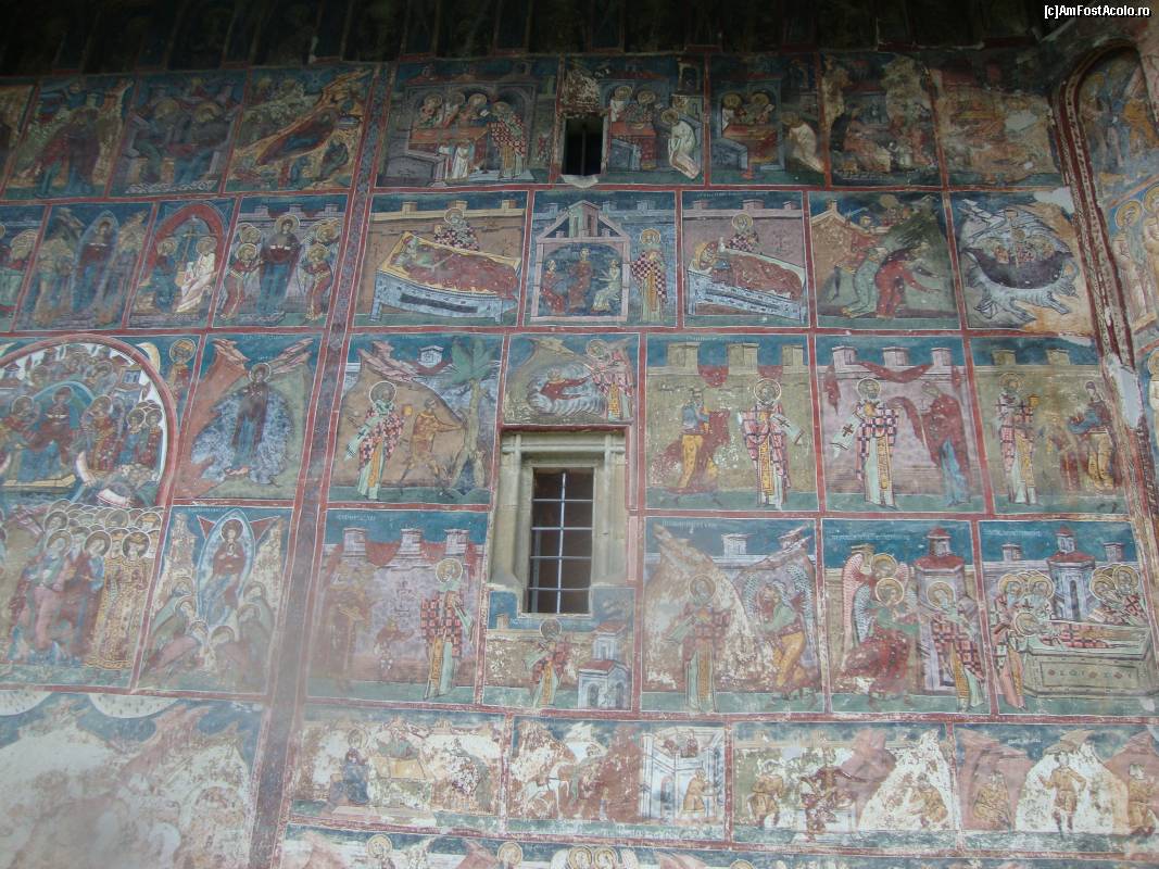 [P13] Picturile din partea superioară a pridvorului deschis de la Mănăstirea Humor.
