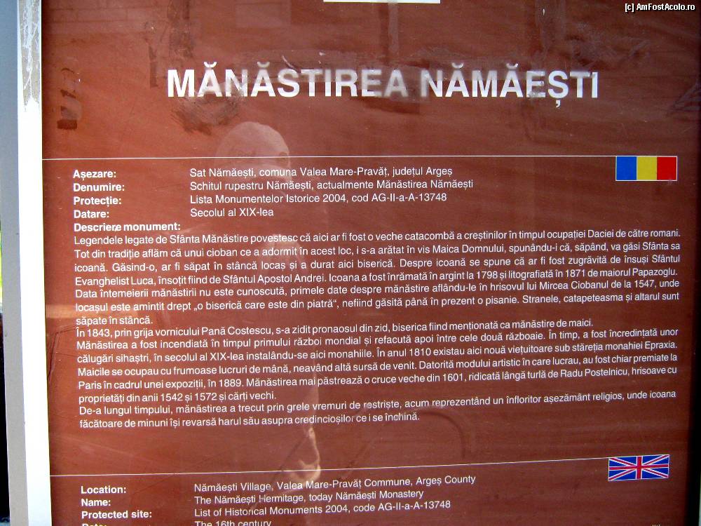 [P11] Un afişier bilingv spune povestea acestui loc sfinţit.