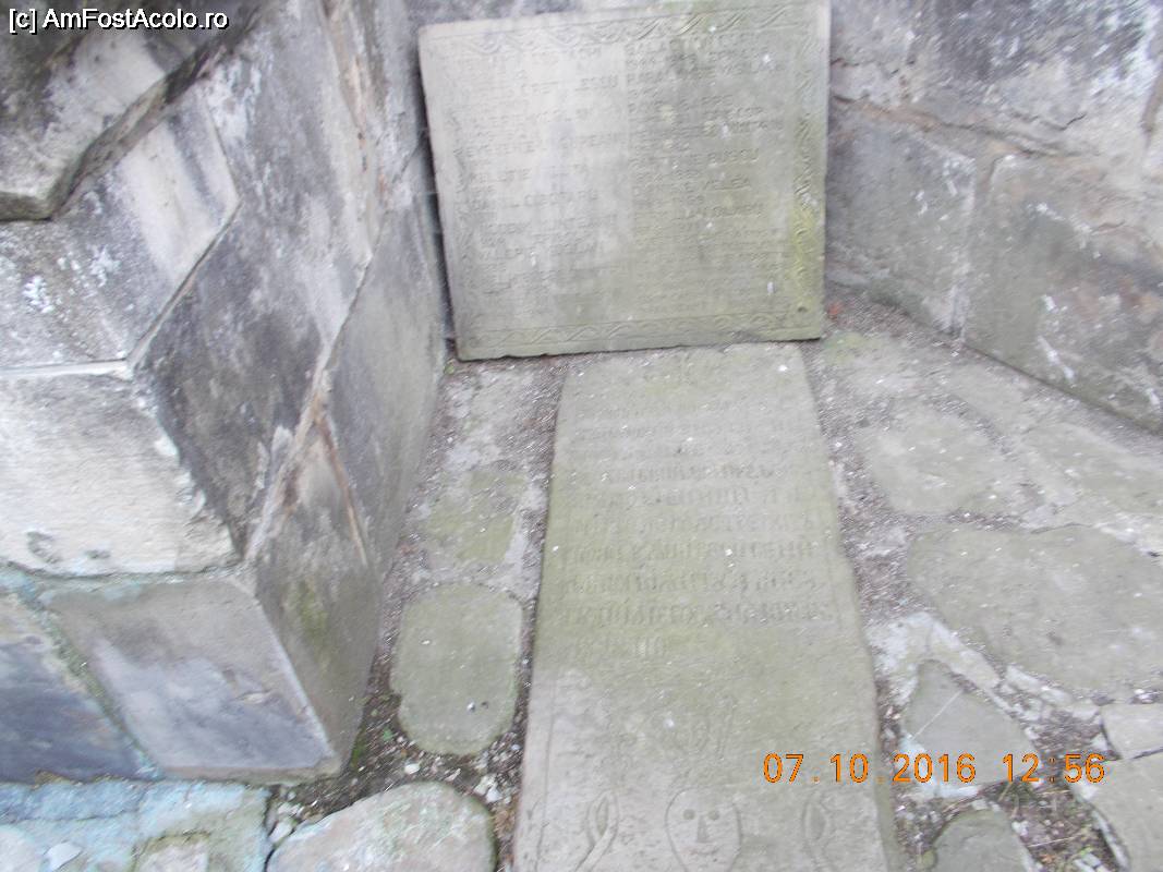 [P12] Latura din stânga intrării, aici au rămas câteva cruci și lespezi de mormânt foarte vechi, chiar lângă zidul bisericii.
