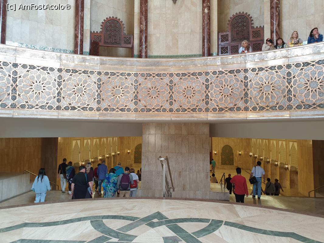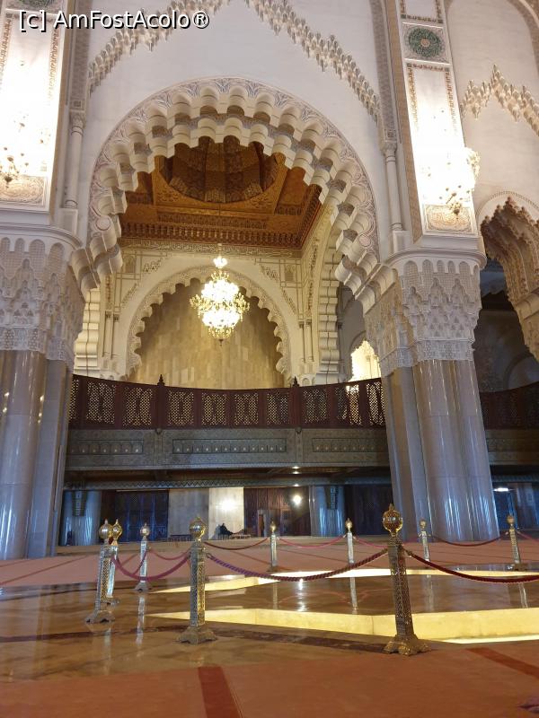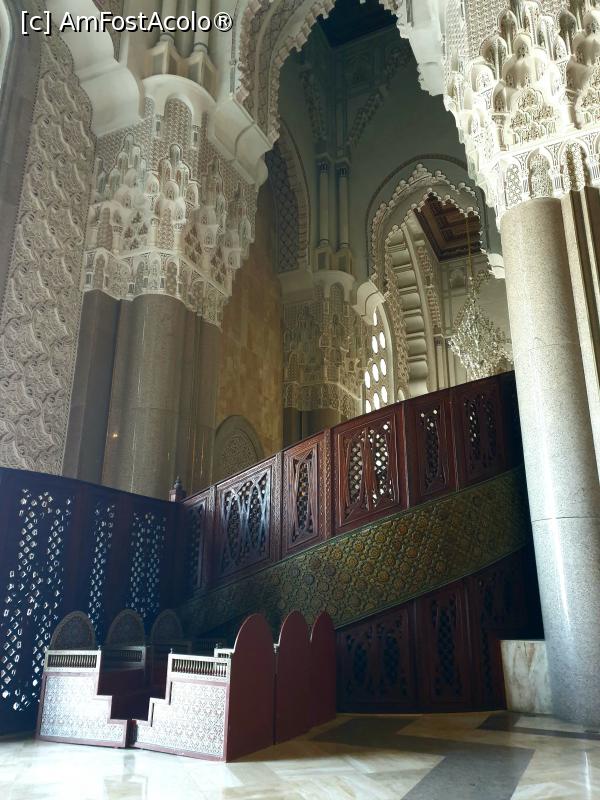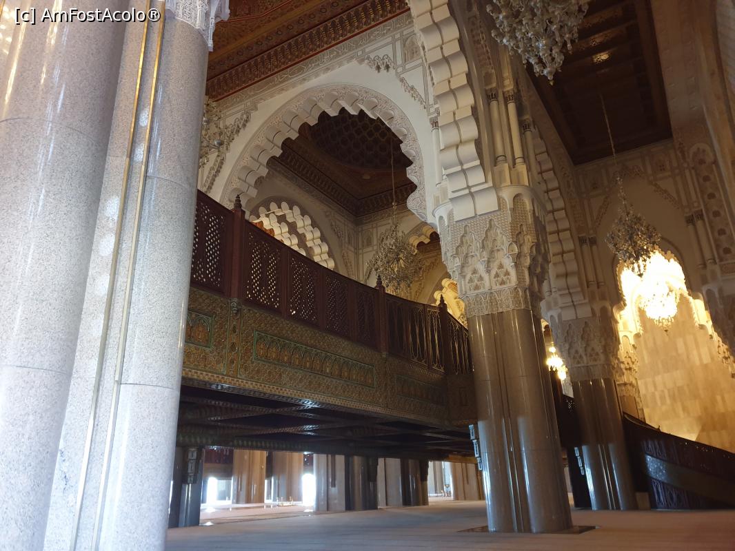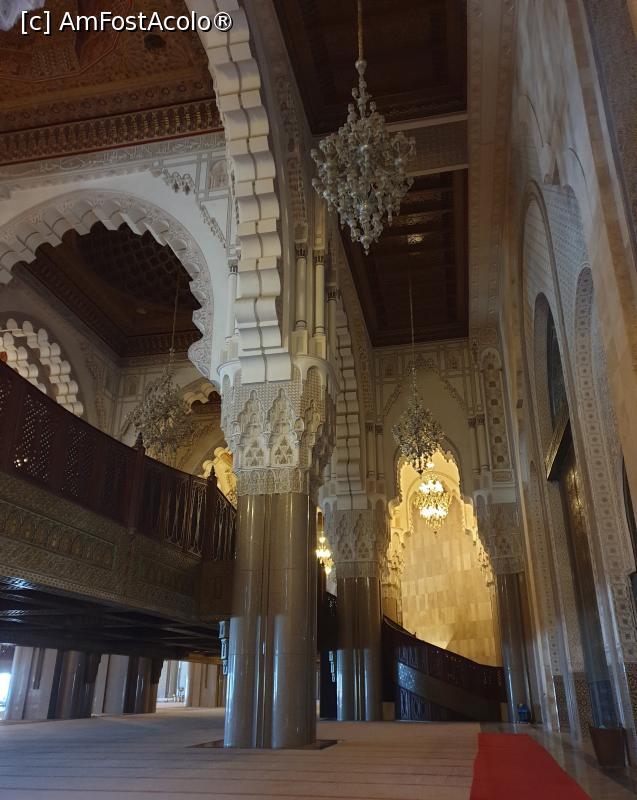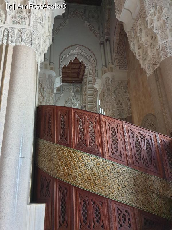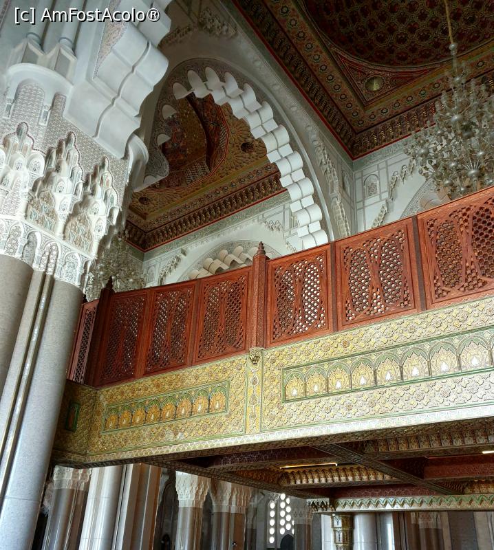 [P20] Pentru femei, este amenajata zona de rugaciune la balcon, pentru a fi ferite vederii, impodobit cu sculpturi in lemn, arcade, granit si marmura, care poate gazdui pana la 5000 de persoane.