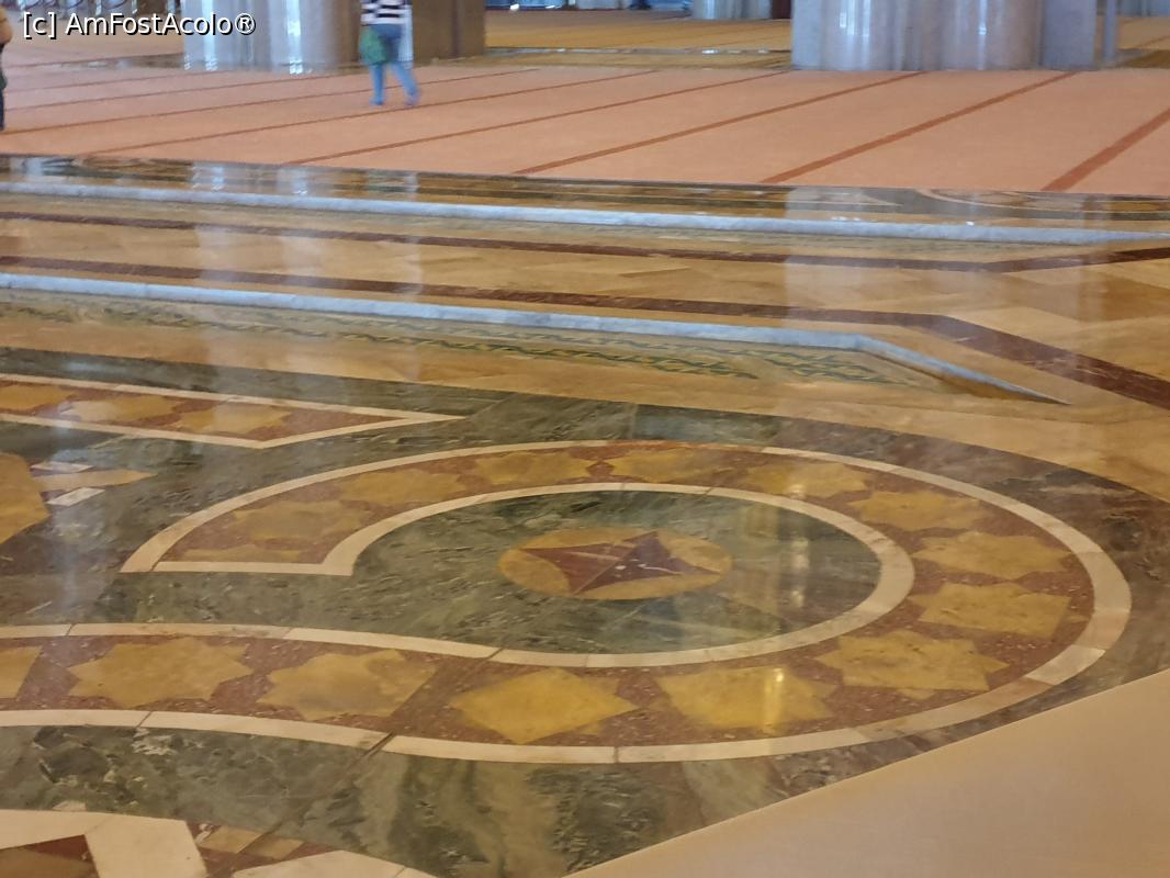 [P28] Un alt element interesant proiectat in interiorul moscheii este un canal prin care circula apa dulce si care se inchide intr-o zona cu podea din sticla prin care se vede camera de ablutie (purificare) situata la subsol.